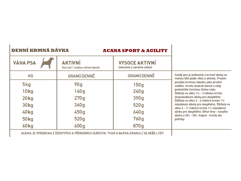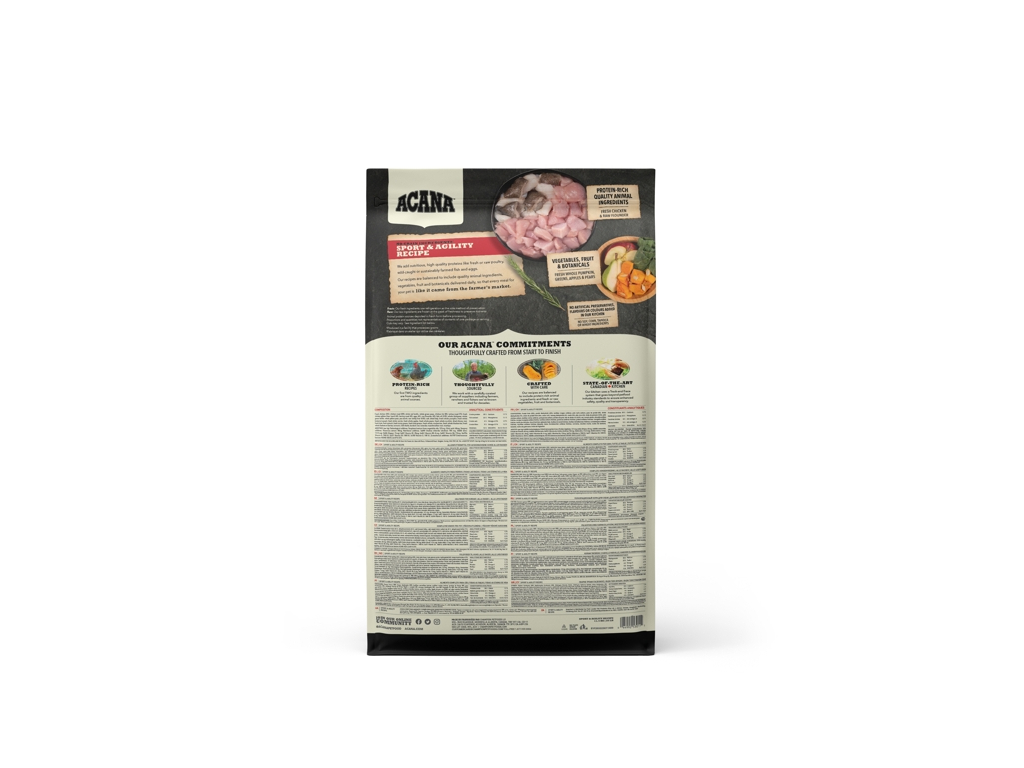 Acana Dog Sport & Agility Recipe je krmivo vhodné pro všechny pracovní, sportující a aktivní psy. Obsahuje kuře, krůtu, vejce a platýse.Více informací
