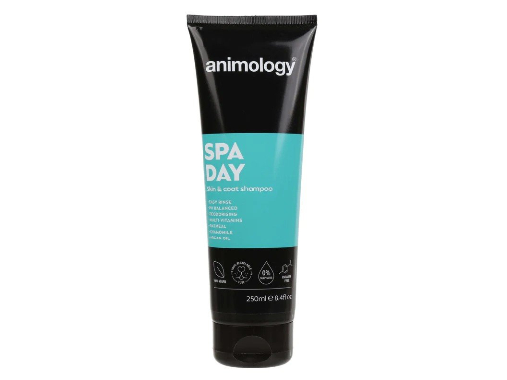 Spa Day od Animology je luxusní šampon, který pečuje o kůži a srst Vašeho psa. Obohacený o ovesné vločky, heřmánkový a argonový olej. Obsahuje vitamíny a kondicionér, což pomáhá zlepšit přirozený lesk a hebkost srsti a zklidňuje pokožku. Spa Day lze použít na všechny typy srsti a kůže a je vhodný pro všechny psy od 6 týdnů.