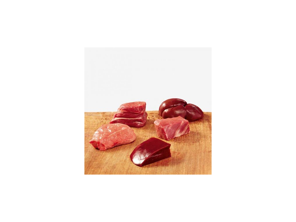 Složení: 43% hovězí maso (plíce, maso, srdce, vemeno, ledviny), 25% jehněčí játra, dršťky), uhličitan vápenatý, 0,2% lososový olej