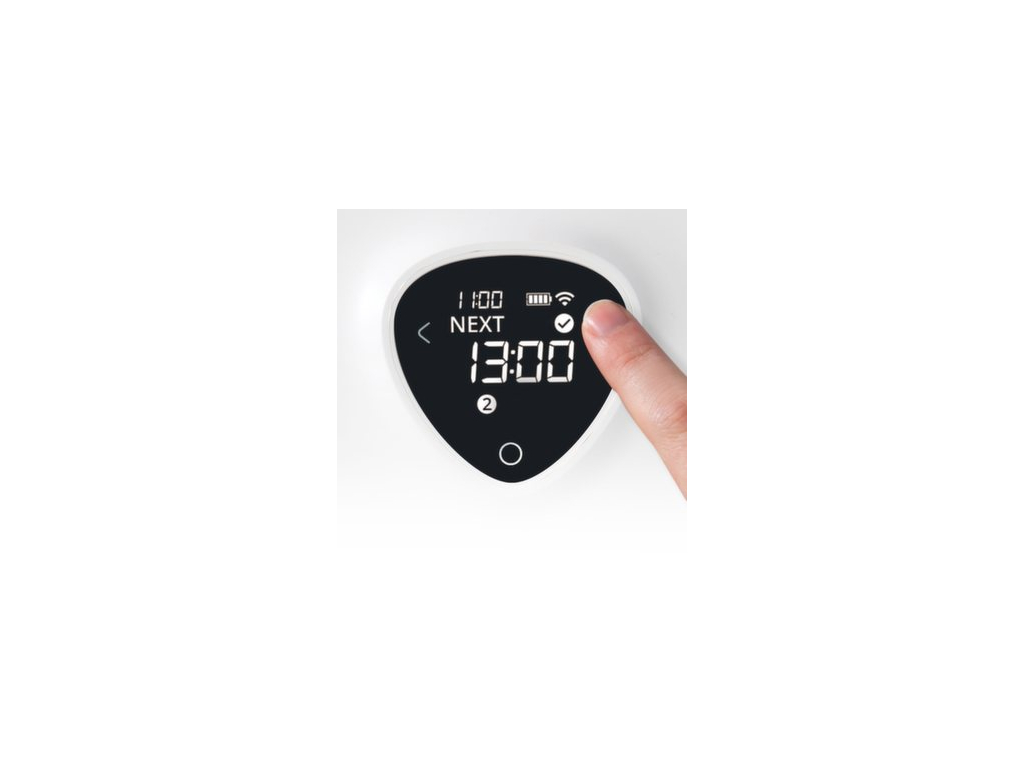 - Akustické signály: při úspěšném krmení (lze deaktivovat pomocí aplikace), při stisknutí ovládacího panelu a nízkém stavu baterie.