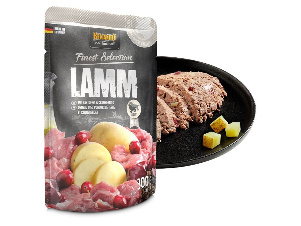 Vybraná směs voňavého jehněčího masa, plných brambor a lehce nakyslých brusinek v masových kapsičkách Belcando ozvláštní menu všech psů a posílí jejich vitalitu a zdraví.