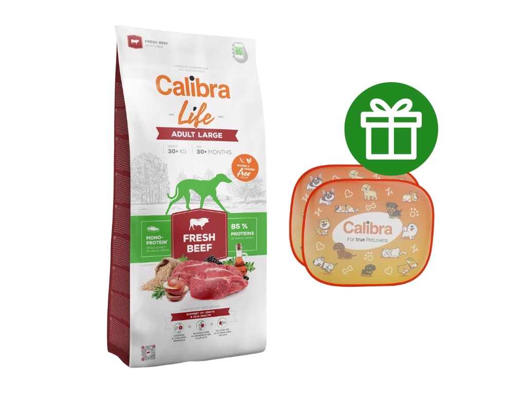 Calibra Dog Life Adult Large Fresh Beef 12kg + Stínítka do auta ZDARMA