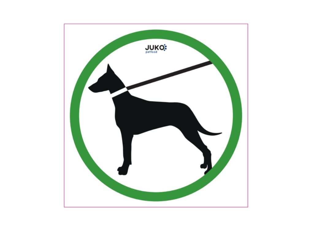 Tato plastová cedulka VSTUP NA VODÍTKU jasně upozorňuje na nutnost mít psa při pohybu v dané oblasti vždy na vodítku.