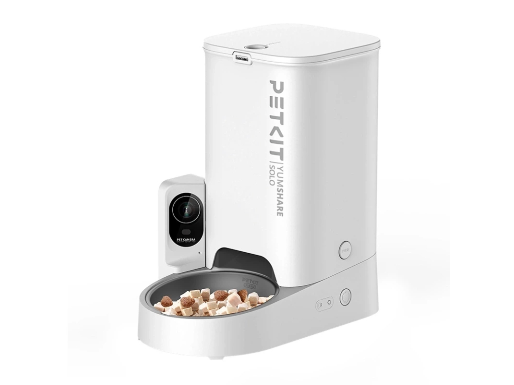 PetKit Yumshare SOLO je inteligentní krmítko pro domácí mazlíčky vybavené širokoúhlou kamerou a obousměrným mikrofonem, díky čemuž můžete svého mazlíčka nejen sledovat, ale také s ním komunikovat a nahrávat jej. Kamera navíc automaticky detekuje a analyzuje množství krmiva v misce a na základě výsledků analýzy může zadržet další krmení, aby se zabránilo překrmování a plýtvání. Pomocí aplikace PETKIT si uživatelé mohou naplánovat krmení podle dne v týdnu, množství a velikosti porcí. Krmivo lze také vydat ručně podržením tlačítka umístěného ve spodní části zařízení, přičemž je zajištěno, že jej váš mazlíček nemůže stisknout, jako je tomu u tlačítka pro otevření nádoby na krmivo. PetKit Yumshare SOLO může být napájen dvěma způsoby – elektřinou ze zásuvky, která je hlavním zdrojem, nebo pěti AAA bateriemi používanými v případě výpadku proudu.