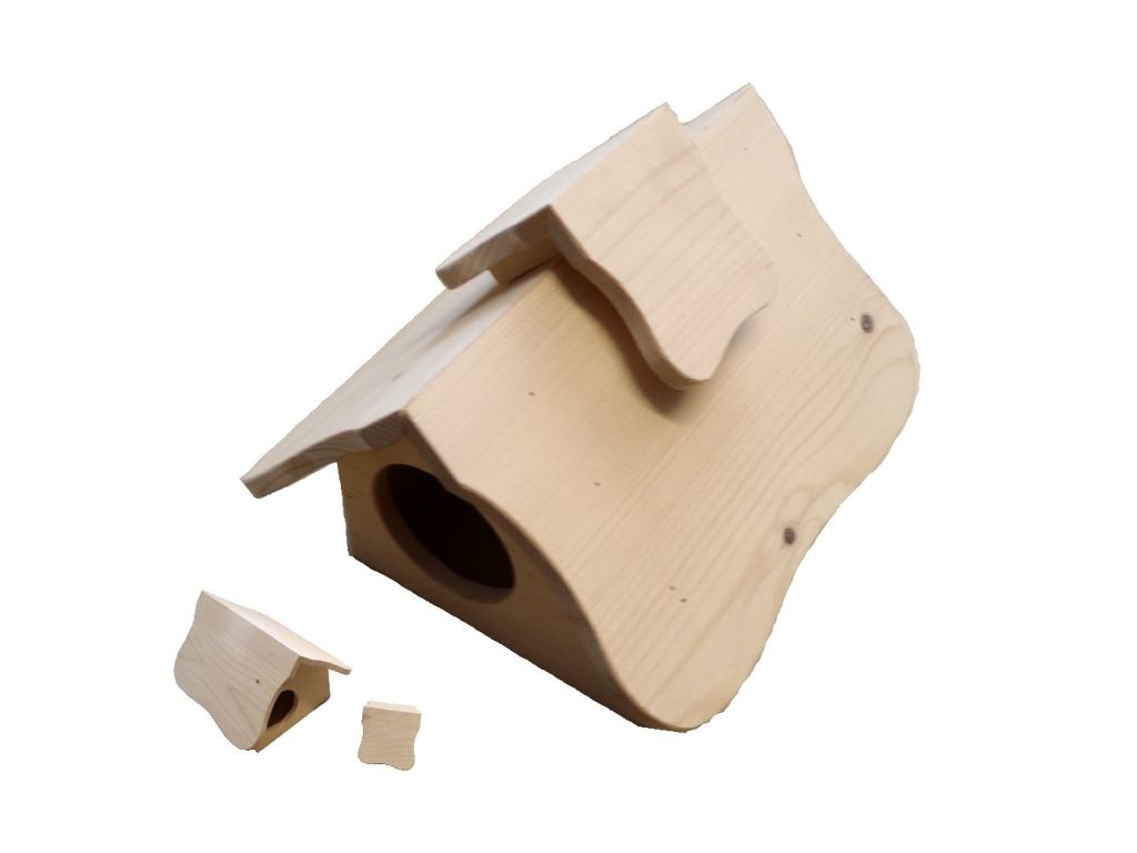 Neobvyklý domeček pro hlodavce stylizován do tyrolských tradičních staveb.