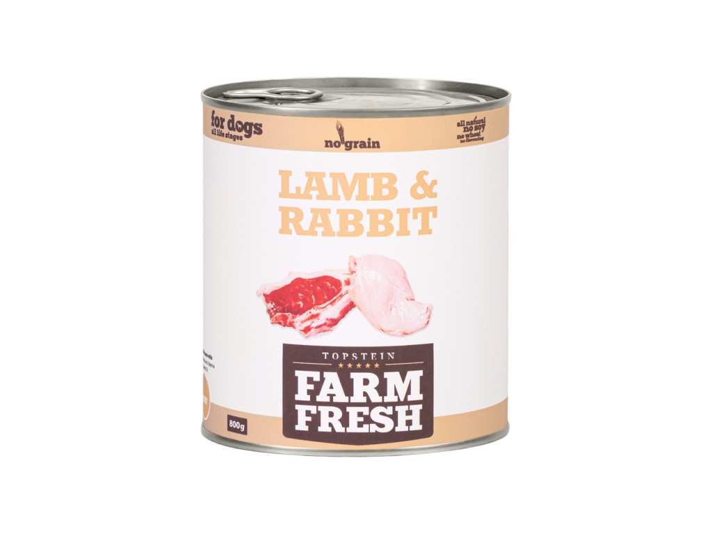 Neodolatelná konzerva s jasnou strukturou 99% hrubě mletého jehněčího a králičího masa. Kompletní krmivo, které se skvělé hodí i pro psí alergiky. Možné podávat psům všech věkových kategorií.