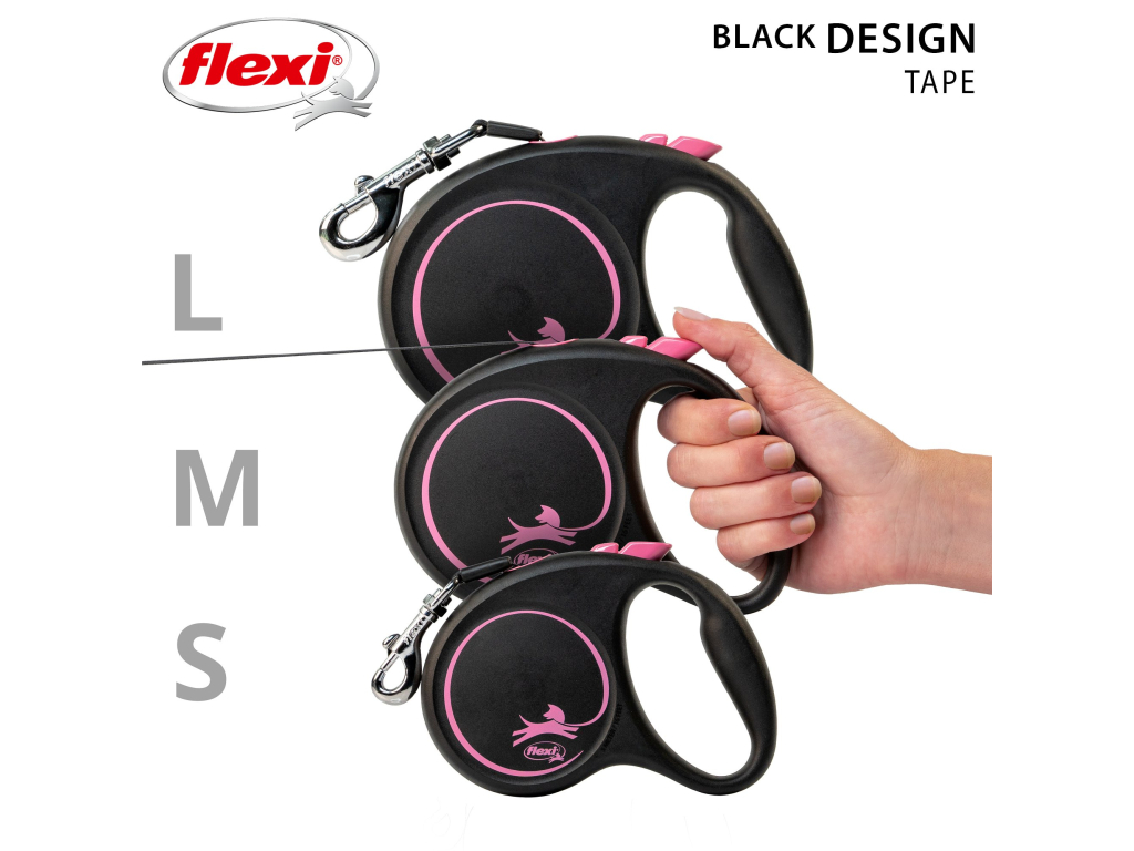 Flexi Vodítko Black Design L pásek 5m černo-růžové