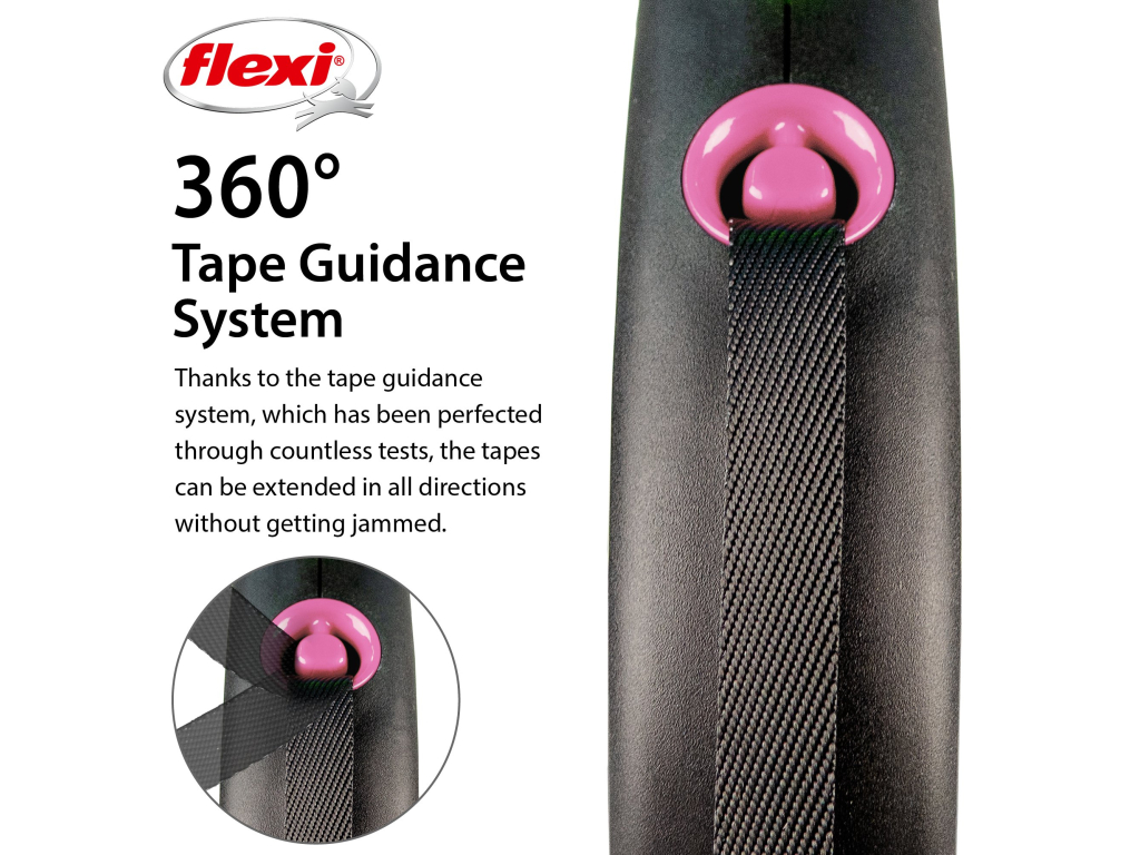 Černá je zpět! Vodítko z řady flexi® Black Design upoutá pozornost na první pohled. Výrazné barvy elegantně kontrastují s černým pouzdrem. Moderní design lze zároveň kombinovat s praktickými doplňky flexi®.