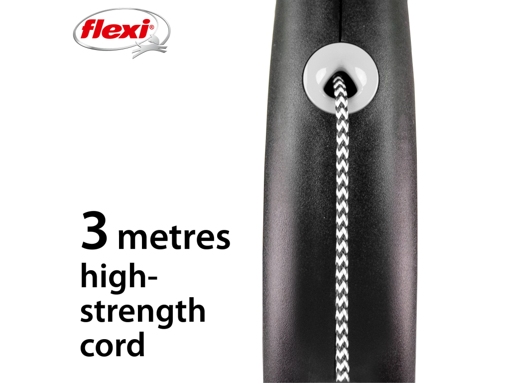 Černá je zpět! Vodítko z řady flexi® Black Design upoutá pozornost na první pohled. Výrazné barvy elegantně kontrastují s černým pouzdrem. Moderní design lze zároveň kombinovat s praktickými doplňky flexi®.