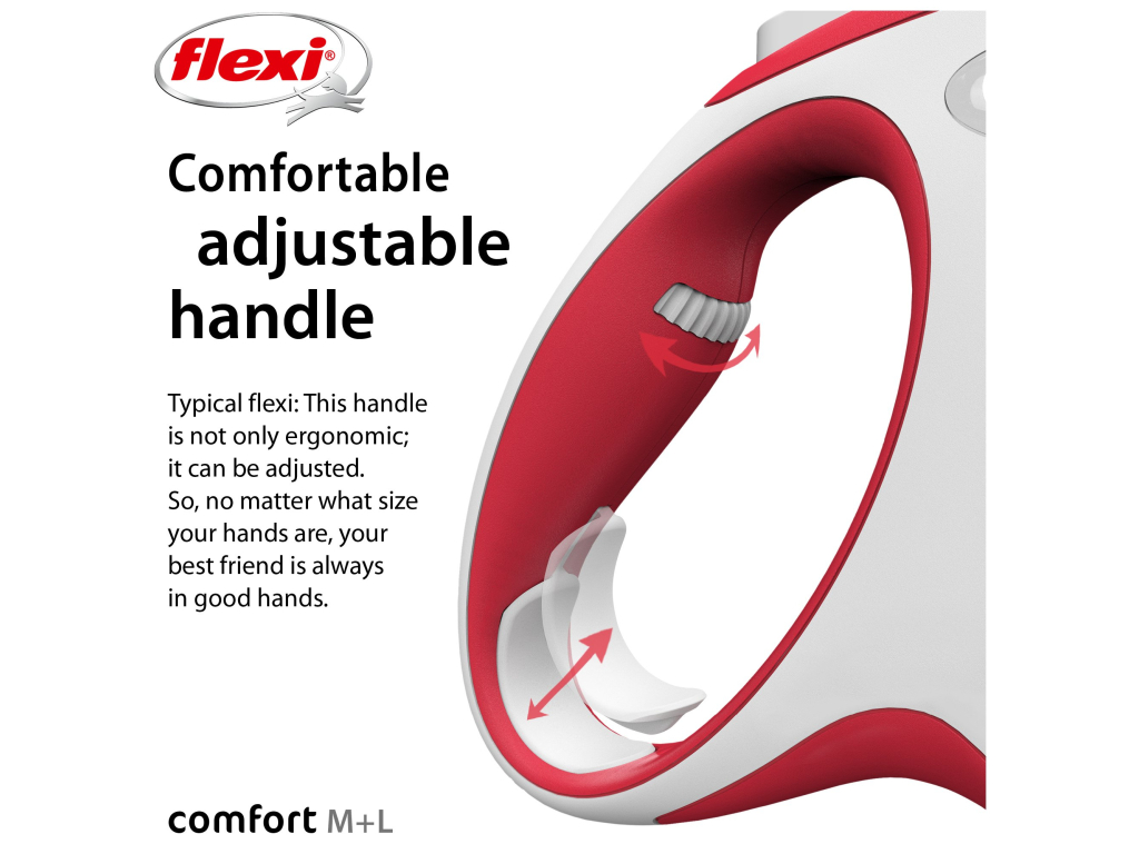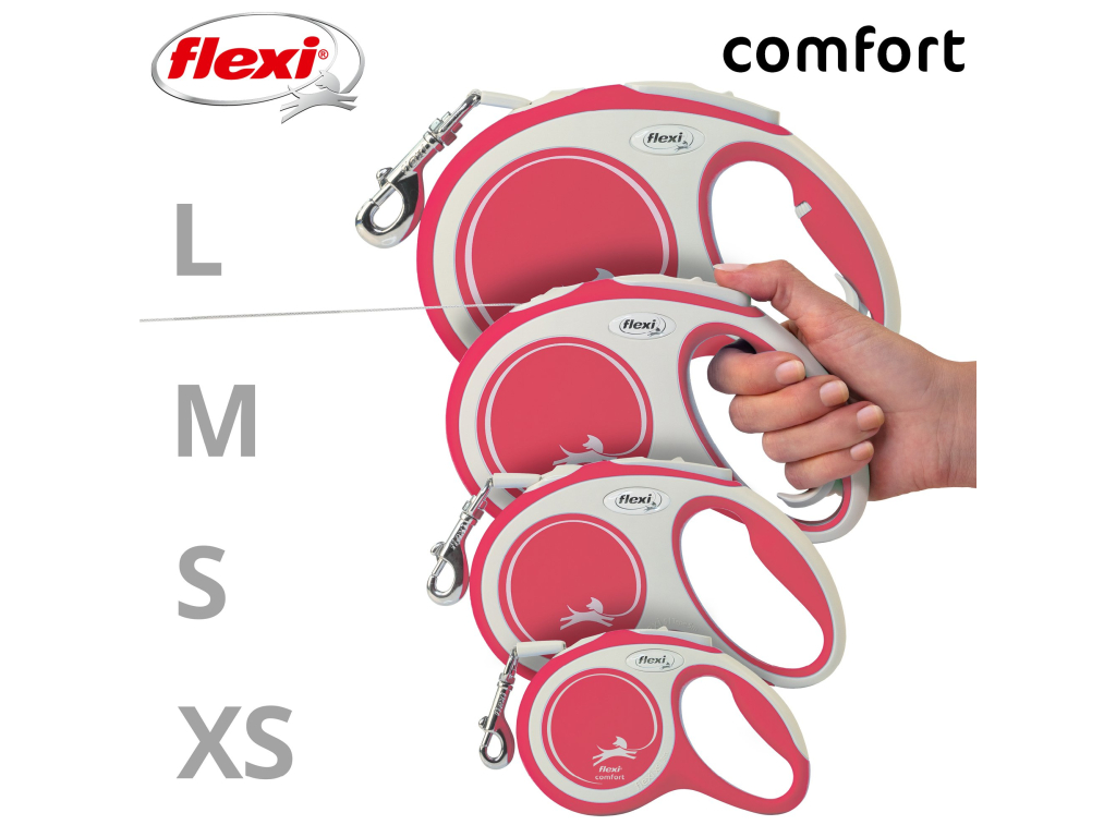 Pohodlné a díky svému dokonale sladěnému designu i unikátní - to je vodítko flexi® Comfort, které nabízí Vašemu čtyřnohému příteli vše, co psi milují: pohyb, pohyb a ještě jednou pohyb! Vás jistě potěší extra pohodlná, měkká rukojeť (ve velikosti M a L je navíc nastavitelná) i zdokonalený výstup a vedení pásku všemi směry bez zasekávání. Na každé procházce oceníte i bezpečný a intuitivní brzdový systém, který ve zlomku vteřiny zastaví pohyb psa. Pro snadné upevnění vodítka k obojku nebo postroji je vodítko opatřeno kvalitní chromovanou karabinou.