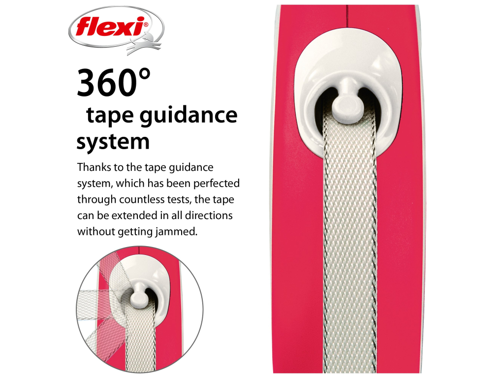 Samonavíjecí vodítko flexi® se nikdy neprověsí. To Vám umožňuje kdykoli zastavit psa stisknutím tlačítka brzdy, bezpečně ho ovládat a přiblížit ho k sobě.