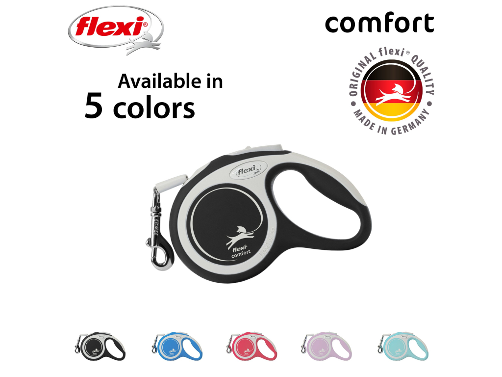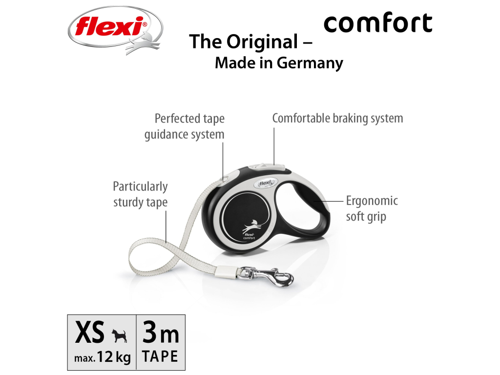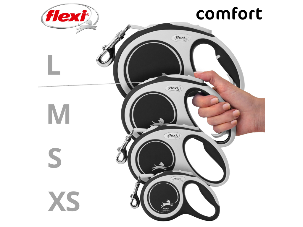 Pohodlné a díky svému dokonale sladěnému designu i unikátní - to je vodítko flexi® Comfort, které nabízí Vašemu čtyřnohému příteli vše, co psi milují: pohyb, pohyb a ještě jednou pohyb! Vás jistě potěší extra pohodlná, měkká rukojeť (ve velikosti M a L je navíc nastavitelná) i zdokonalený výstup a vedení pásku všemi směry bez zasekávání. Na každé procházce oceníte i bezpečný a intuitivní brzdový systém, který ve zlomku vteřiny zastaví pohyb psa. Pro snadné upevnění vodítka k obojku nebo postroji je vodítko opatřeno kvalitní chromovanou karabinou.