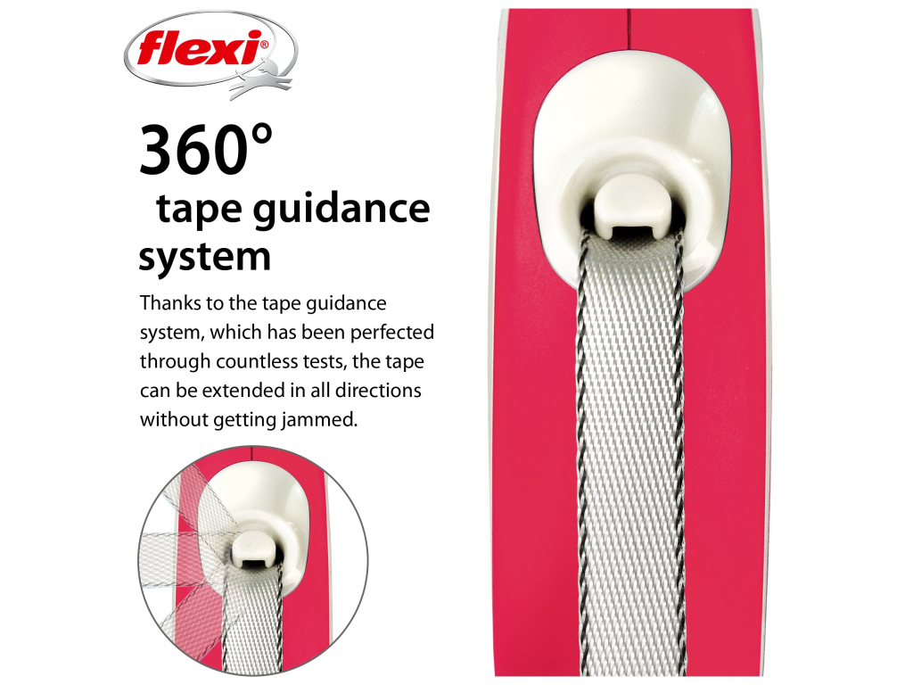 Samonavíjecí vodítko flexi® se nikdy neprověsí. To Vám umožňuje kdykoli zastavit psa stisknutím tlačítka brzdy, bezpečně ho ovládat a přiblížit ho k sobě.