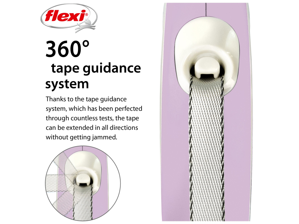 Samonavíjecí vodítko flexi® se nikdy neprověsí. To Vám umožňuje kdykoli zastavit psa stisknutím tlačítka brzdy, bezpečně ho ovládat a přiblížit ho k sobě.