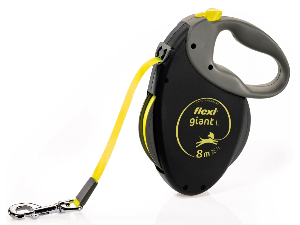 Flexi má srdce pro velké psy! Představujeme nejdelší vodítko flexi® Giant L Professional, které nabízí 10 m volného pohybu a technologii stejně robustní jako Váš 50kg parťák. Je navrženo pro silné a aktivní psy. A co nabízí Vám? Měkkou rukojeť pro dlouhé výlety a tréninky a mnoho dalších benefitů: