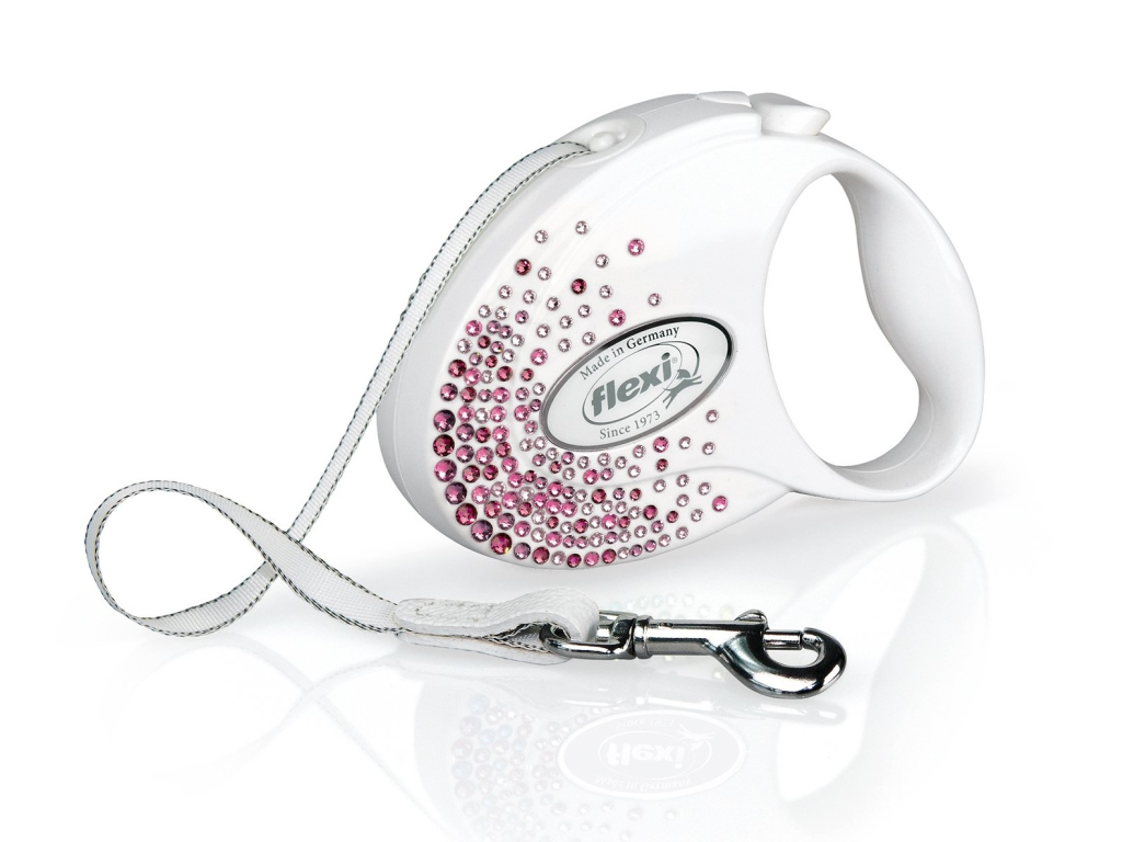 S elegantním lesklým povrchem a zdobením vysoce kvalitními krystaly představuje flexi® Glam jedinečné vodítko s puncem luxusu. Kožené zakončení pásku dokonale kombinuje design a funkčnost. Vyberte si ten správný třpyt pro váš velkolepý vstup do psího parku!
