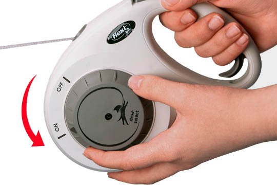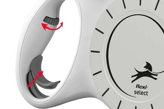 Pokud chcete, aby Váš pes šel u nohy, můžete vodítko flexi® zablokovat pomocí funkce aretace.