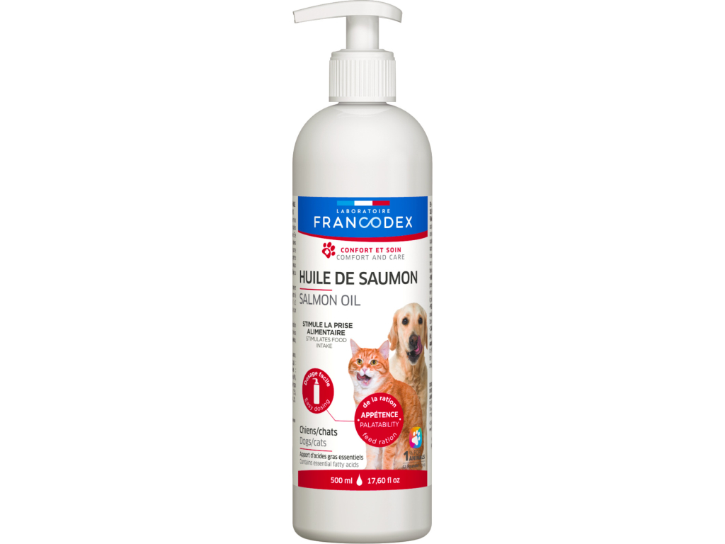 Lososový olej je bohatým zdrojem omega-3 a omega-6 nenasycených mastných kyselin. Ty jsou vyžadovány mnoha funkcemi organismu a jejich nedostatek může mimo jiné způsobit lupy, matný vzhled srti nebo její řídnutí. Větší množství těchto nenasycených mastných kyselin je potřeba např. při dietě, v období zvýšené zátěže, březosti, laktace a v období růstu. Přidáním lososového oleje do denní stravy zvýšíte chutnost jídla pro vybíravé psy a kočky a předejte tak riziku jejich nedostatku.
