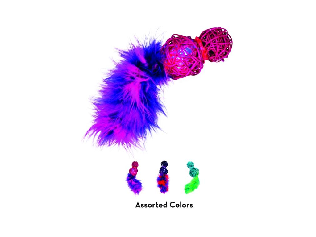 Interaktivní hračka pro kočky pro jejich nekonečnou zábavu při hře. Dva spojené kolotoče s plyšovým ocáskem a peřím. Rozměry: 45x25cm