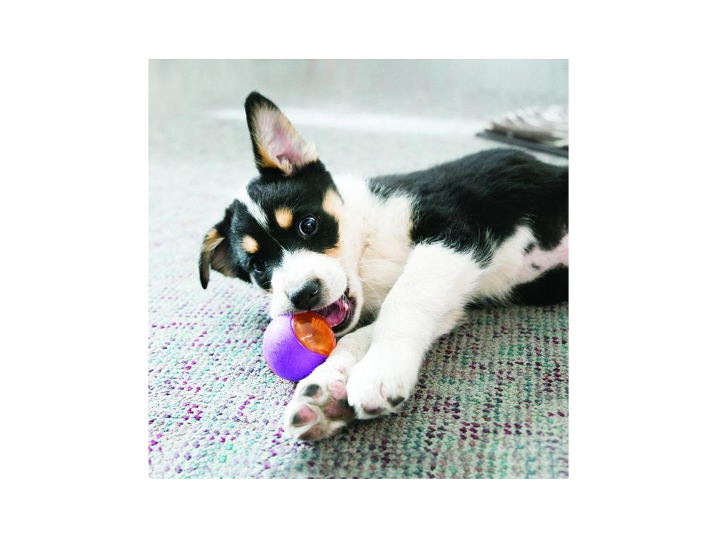 Gumový míček s vyztuženým vnitřkem, díky kterému poskytuje zvýšenou odolnost hračky i pro psy se silnějším skusem.
