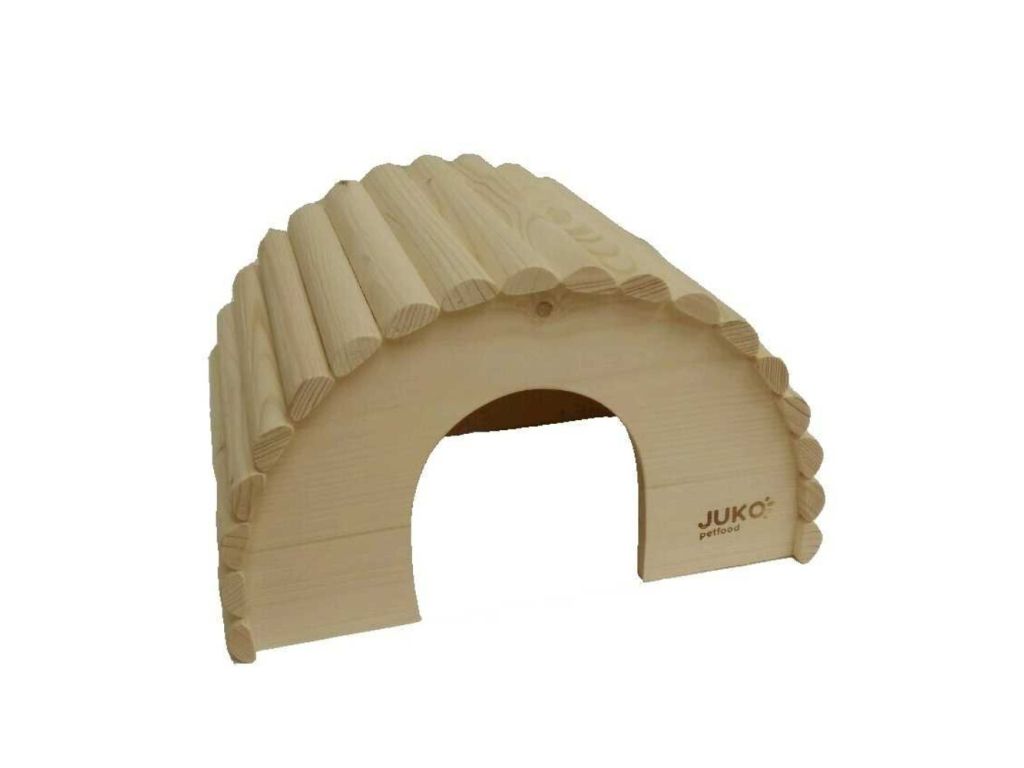 Dřevěný domeček veliký akorát tak pro pohodlný odpočinek králíka nebo hlodavce v podobné velikosti.