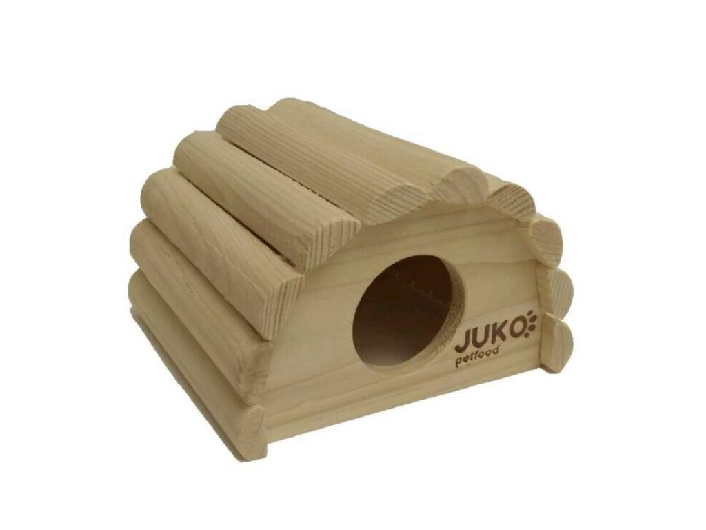 Dřevěný domeček veliký akorát tak pro pohodlné schování křečka nebo hlodavce v podobné velikosti.