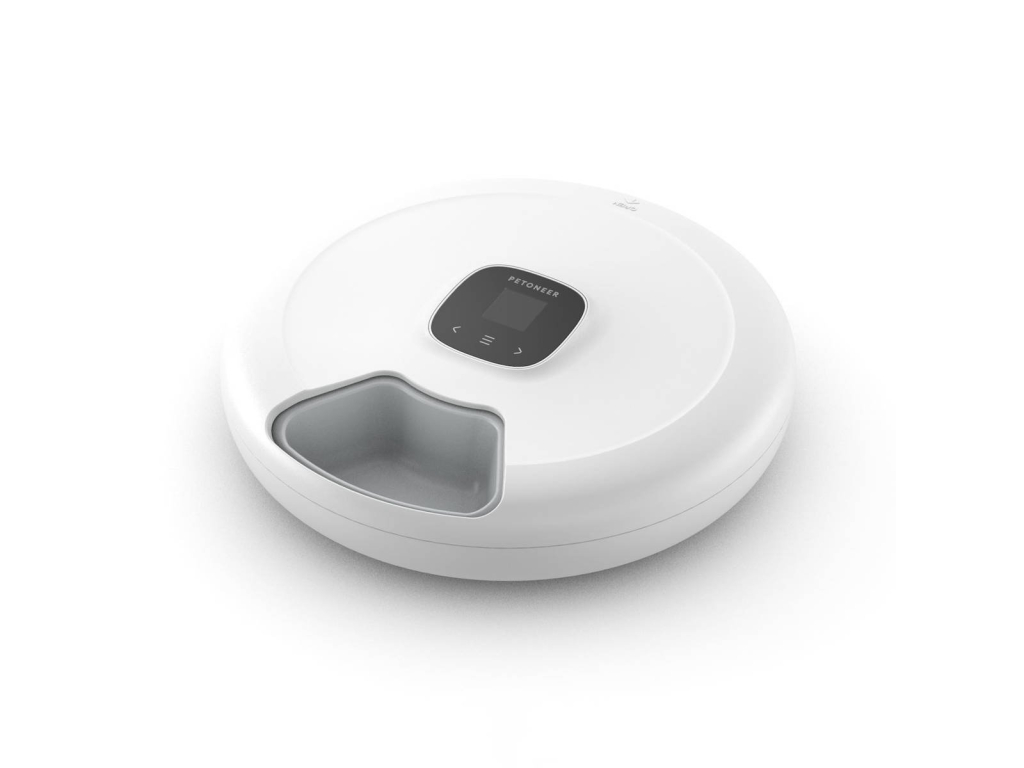 Petoneer NutriSpin je chytrý dávkovač se 6 přihrádkami pro suché i mokré krmivo, který umožňuje sestavit krmný plán, ovládat zařízení přes aplikaci a snadno jej čistit.