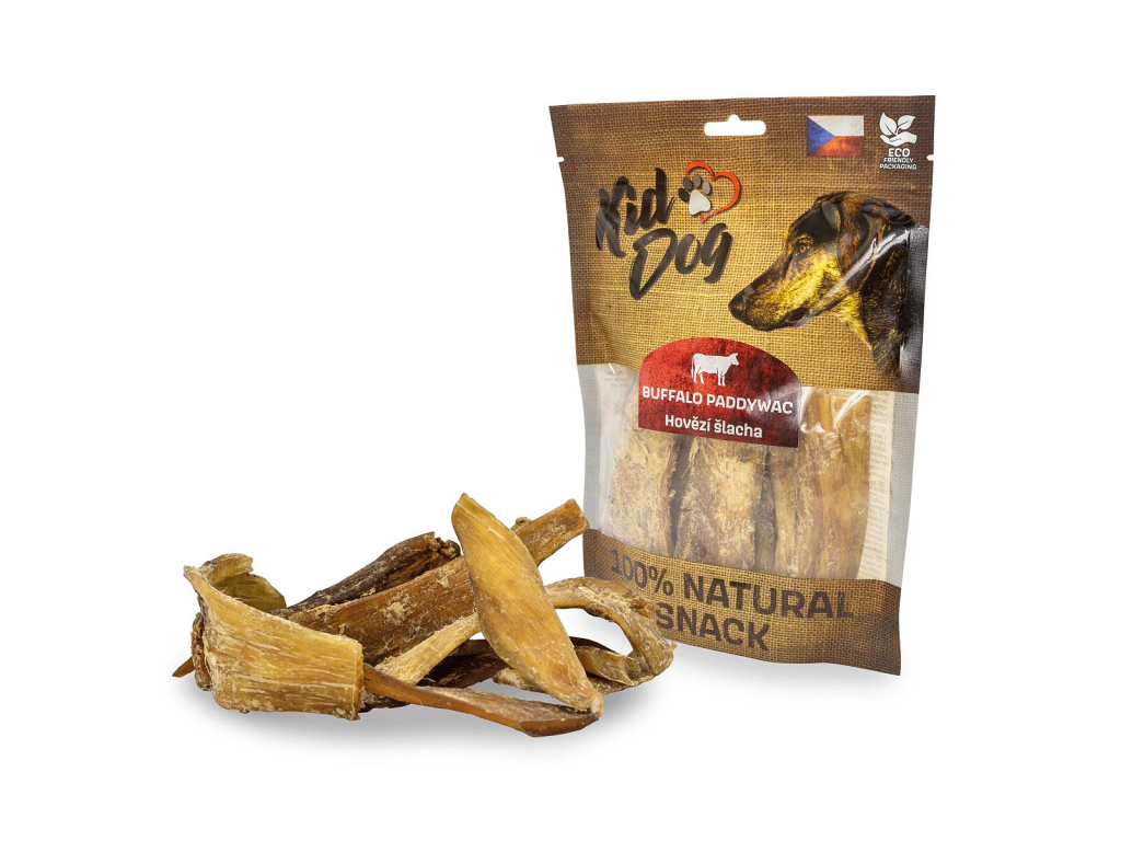 KIDDOG NATURAL SNACK je vysoce kvalitní pamlsek, 100% přírodní produkt šetrně sušený teplým vzduchem. Neobsahuje žádné konzervanty a barviva. Účinně pomáhá při čištění zubů od zubního plaku. Posiluje žvýkací svaly. Je bohatý na přírodní kolagen. Vhodný pro střední a velká plemena.