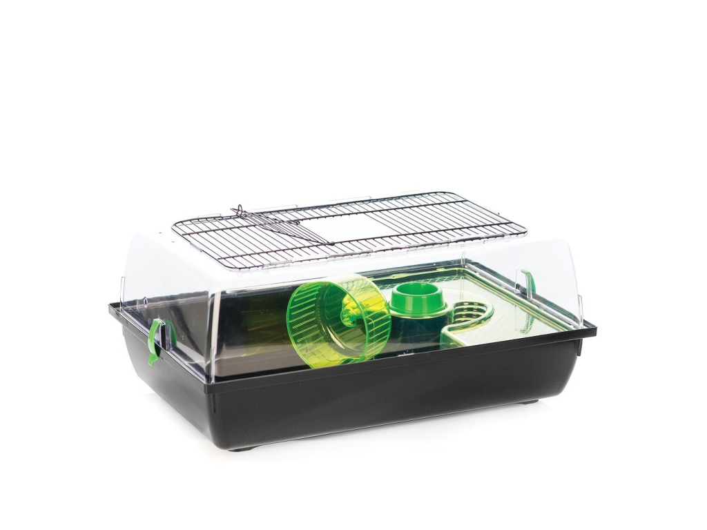 - Součástí klece je plastový kolotoč, plastová mistička a plastové patro.