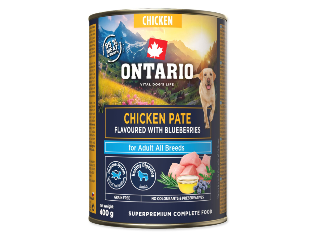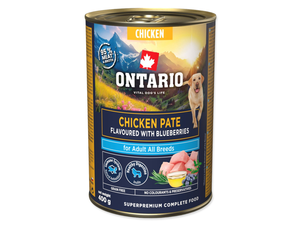 Konzerva Ontario Adult kuřecí pate s příchutí borůvek 400g