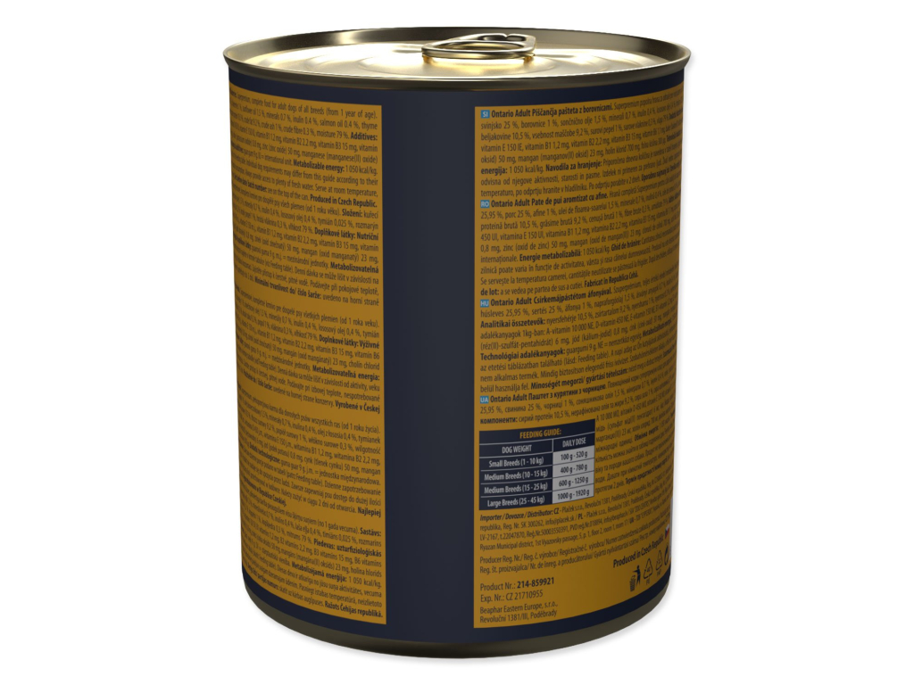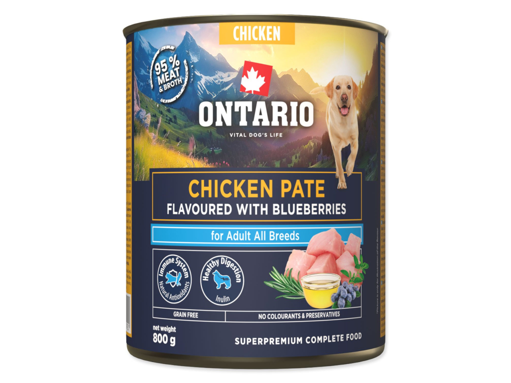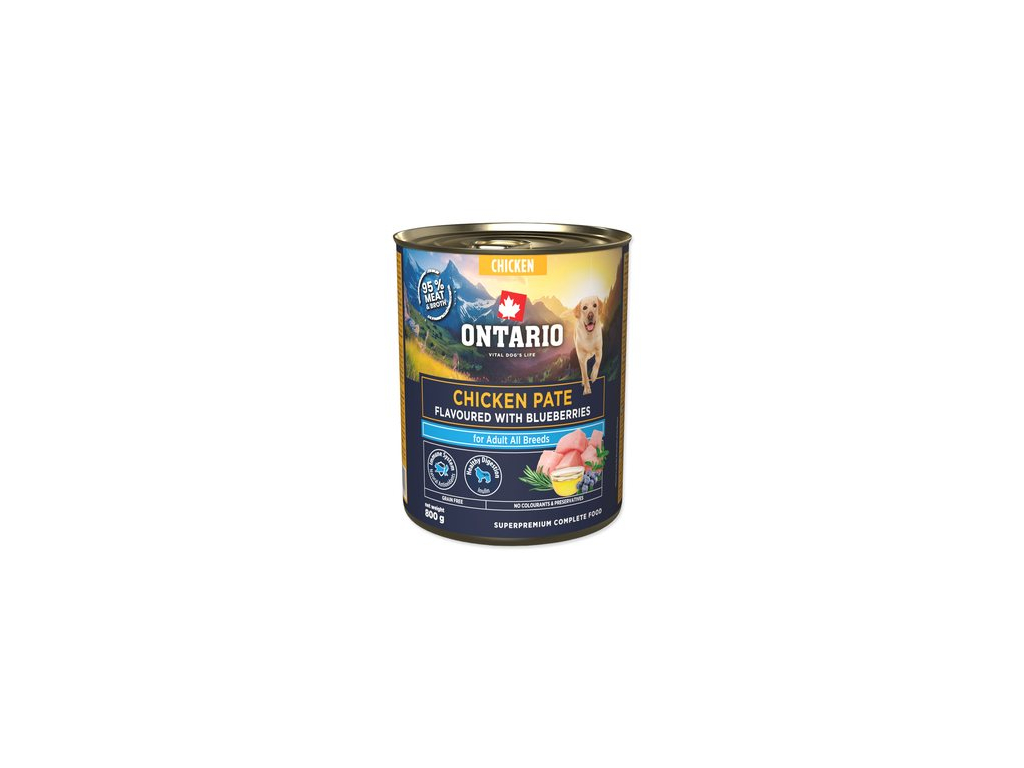 Konzerva Ontario Adult kuřecí pate s příchutí borůvek 800g