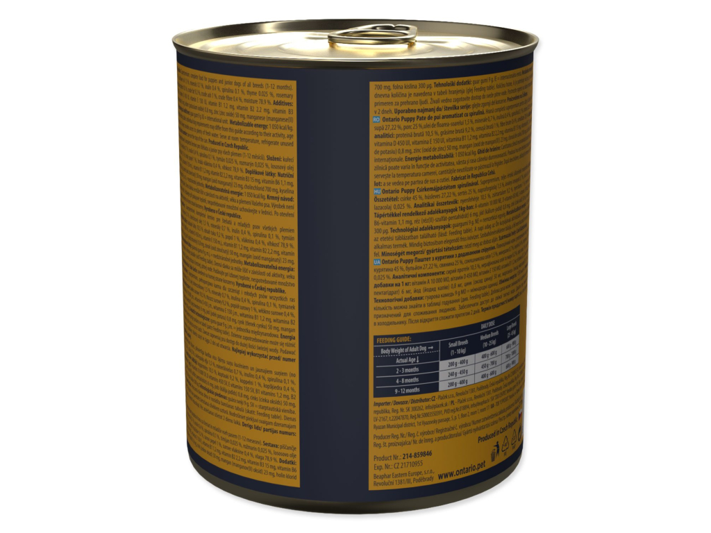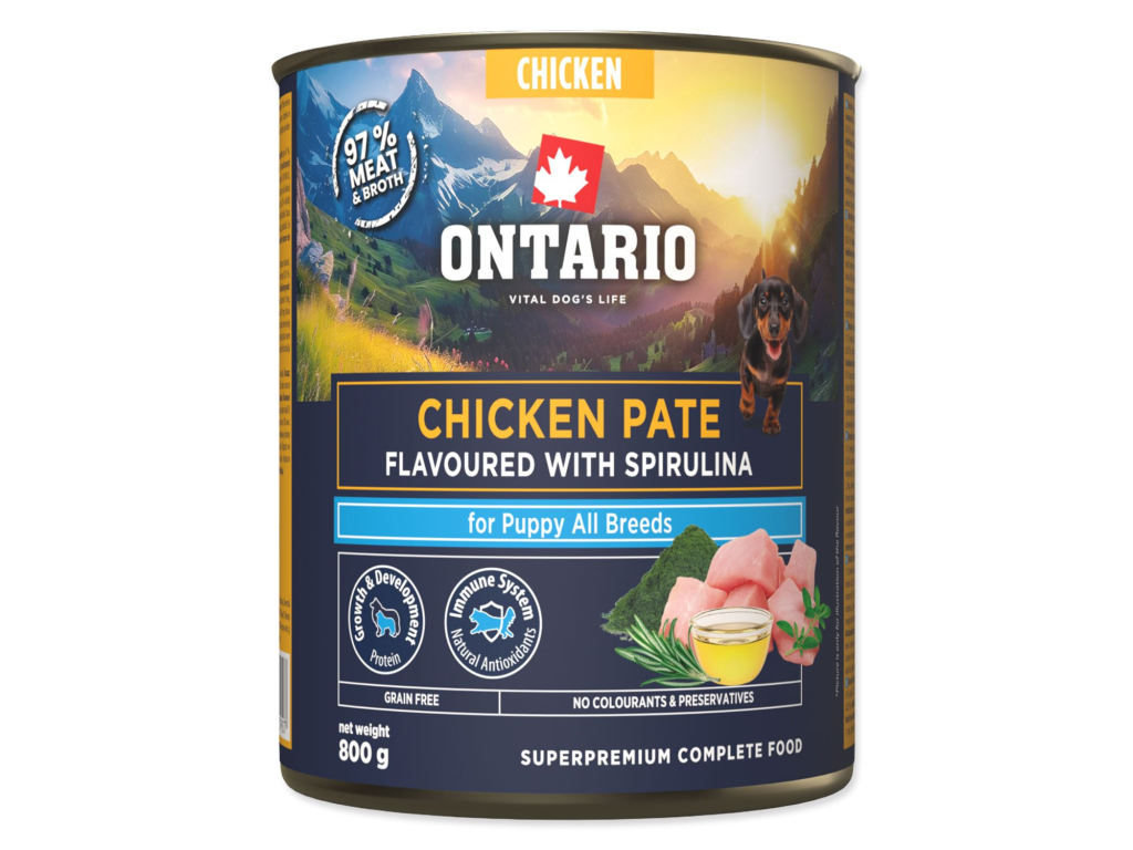 Konzerva Ontario Puppy kuřecí pate s příchutí spiruliny 800g