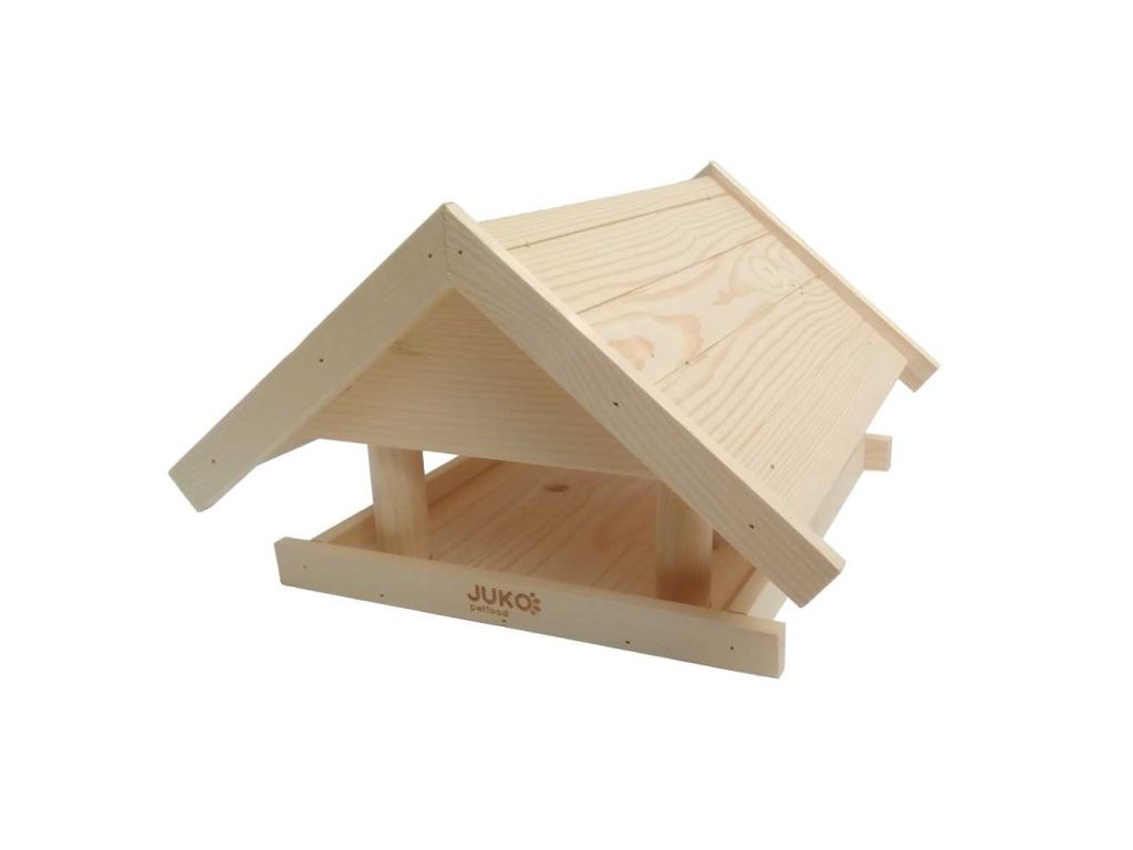 Prostorově výrazné dřevěné krmitko určené pro podzimní a zimní přikrmování volného ptactva.