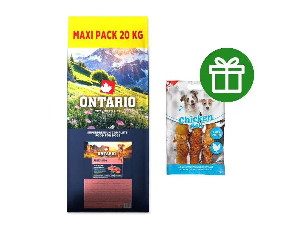 Krmivo Ontario Adult Large Lamb & Brown Rice 20kg + ZDARMA pamlsky Nobby 70g