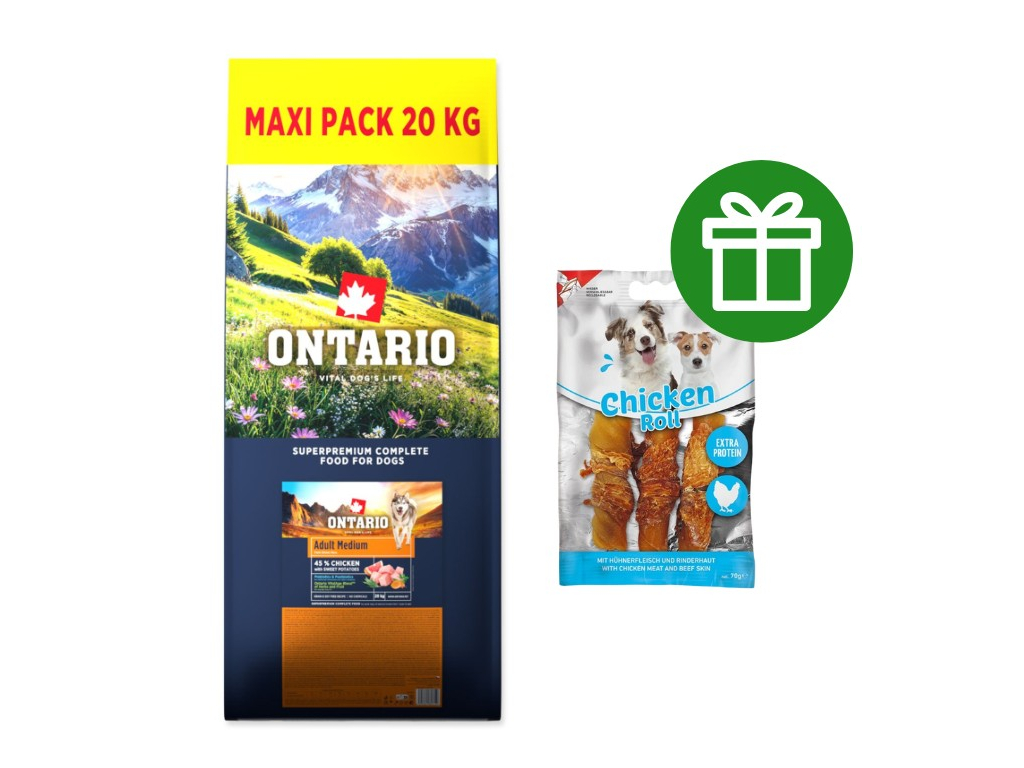 Krmivo Ontario Adult Medium Chicken & Sweet Potatoes 20kg + ZDARMA pamlsky Nobby 70g