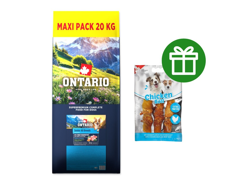 Krmivo Ontario Senior All Breeds Monoprotein Turkey & Sweet Potatoes 20kg + ZDARMA pamlsky Nobby 70g