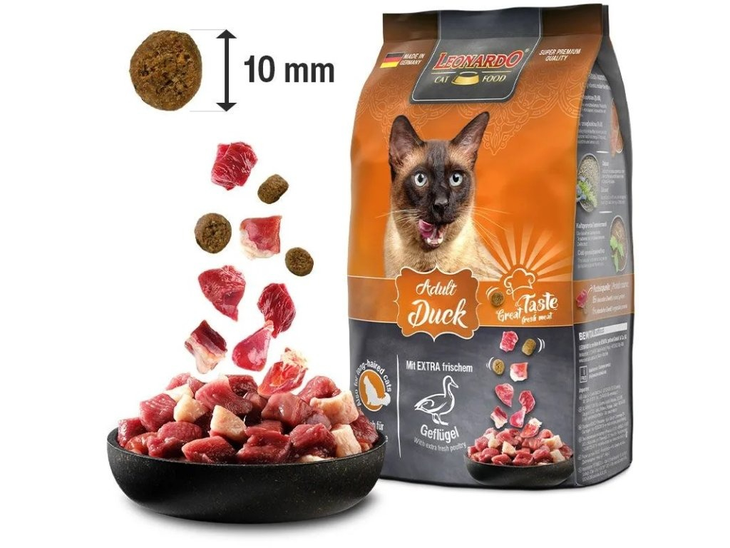 Prémiová značka Leonardo z Německa vyrábí prvotřídní výživu, která uspokojí všechny potřeby koček. Krmivo je vyvážené a pečuje o zdravé zuby, trávení, srst, močové cesty a celkovou imunitu. Výrobce Leonardo si zakládá na použití vysokého množství čerstvého masa, ekologicky šetrné výrobě a regionálních surovinách.