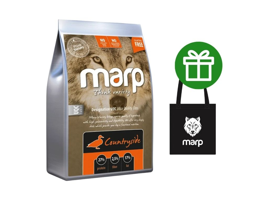 Přírodní granule Marp Variety Countryside s kachním masem jsou vhodné pro dospělé psy všech plemen a štěňata středních a velkých plemen psů. Maso zpravidla pochází ze zvířat z volných chovů. Řada Variety obsahuje jeden druh živočišných bílkovin vždy v kombinaci čerstvého a sušeného masa. Jako příloha je použita hnědá rýže a rýže, které jsou pro psy lehce stravitelné. Díky tomu, že je krmivo bez lepku, je vhodné i pro psy s citlivým zažívám a potravními alergiemi.