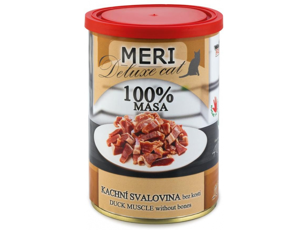 České masové konzervy MERI jsou určené pro kočky. Jsou naplněny celými kousky svaloviny. Obsahuje svalovinu kuřecí, hovězí, vepřovou, krůtí, kachní, lososa nebo šproty. Konzervy jsou opatřeny plastovým víčkem pro uchování čerstvosti po otevření. Některé konzervy s kuřecím masem můžou obsahovat kosti, které se však díky vysokému tlaku a teplotě při sterilaci dají rozmáčknout mezi prsty. Kosti jsou důležitým zdrojem vitamínů a minerálů v přírodní formě, takže jsou pro kočku také nedílnou součástí jídelníčku.