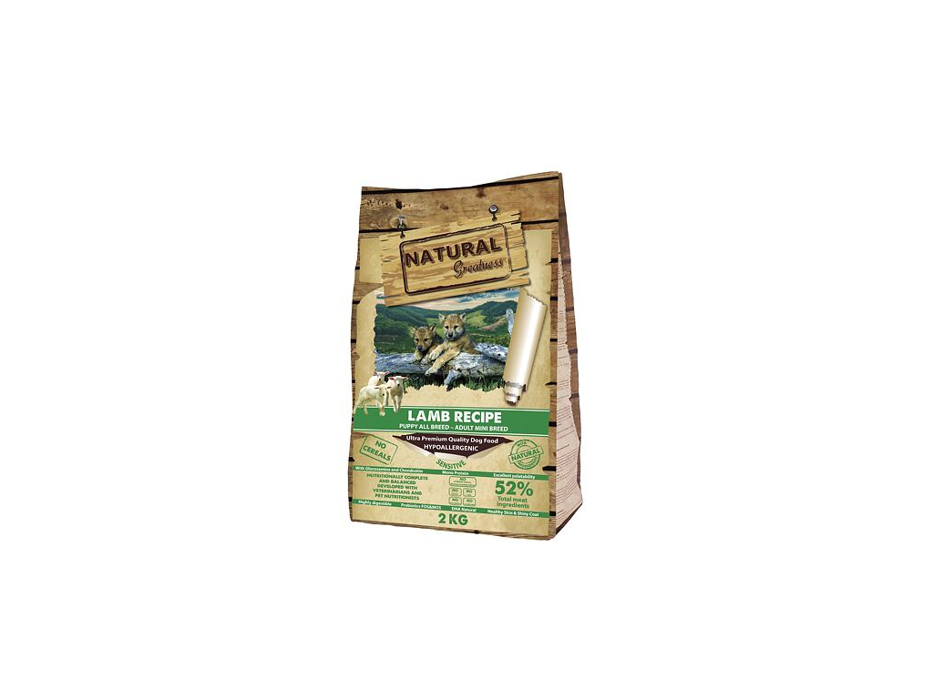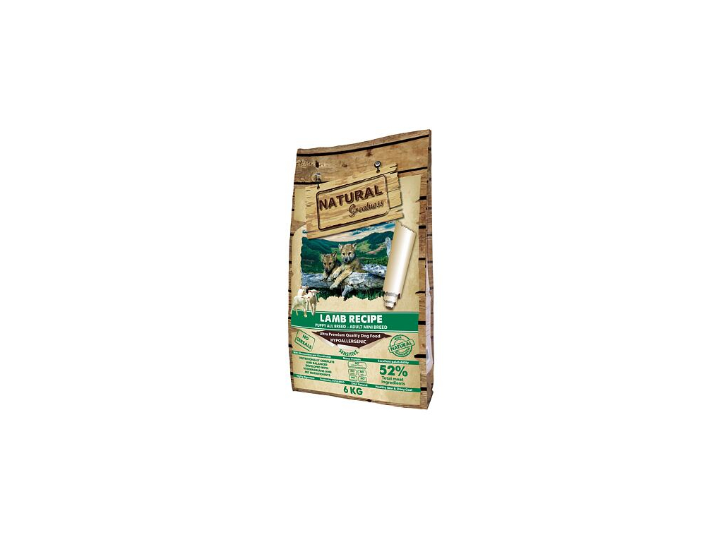 Natural Greatness Lamb Recipe Sensitive Starter Puppy & Adult Mini je kopletním krmením ultra prémiové kvality.