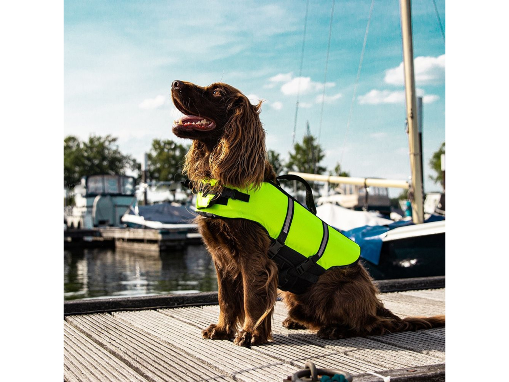 Záchranná vesta pomáhá chránit vašeho psa při vodních sportech, skákání do vody, nebo pádu přes palubu. Tyto vesty mají záchytné madlo na hřbetní straně pro snažší zachycení a vyzdvižení psa do lodi a kontrastní dvoubarevné provedení a reflexní pruhy pro lepší viditelnost.