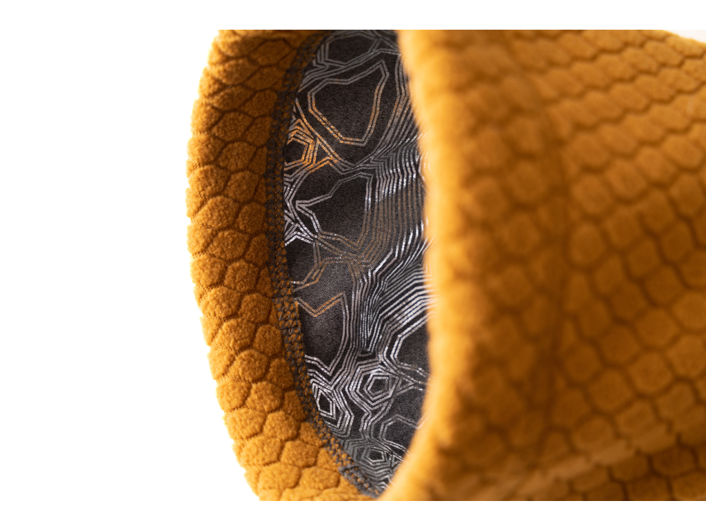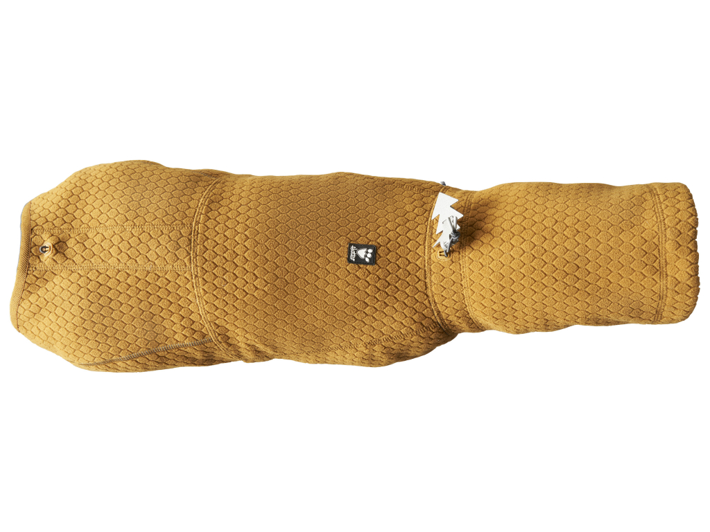 Vrstva na povrchu je lehká z recyklovaného ECO plástvového fleece materiálu. Vnitřní vrstva je z žerzeje podšitého tenkou vrstvou hliníku, což je osvědčený materiál mezi pejskaři. Podšívka z hliníku vrací teplo vytvořené tělem zpět k pejskovi, což bundu dělá dobrou volbou pro zahřátí nebo udržení tepla. Bunda je z měkkých materiálů a nešustí, takže je vhodná i pro psy, kteří mají citlivý sluch. Bundička Midlayer je vhodná jako první kousek oblečení pro pejska, který ještě nikdy nebyl zvyklý oděv nosit.