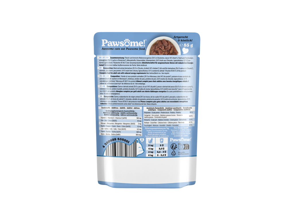 Krmivo Pawsome! je vytvořeno tak, aby splňovalo očekávání i těch nejmlsnějších mazlíčků a zároveň zajišťovalo jejich zdraví, vitalitu a celkovou spokojenost. Jeho delikátní chuť, vůně a kombinace kousků masa a omáčky nabízí kočkám jedinečný chuťový zážitek a zároveň jim dodává živiny, nezbytné pro jejich každodenní dobrodružství.