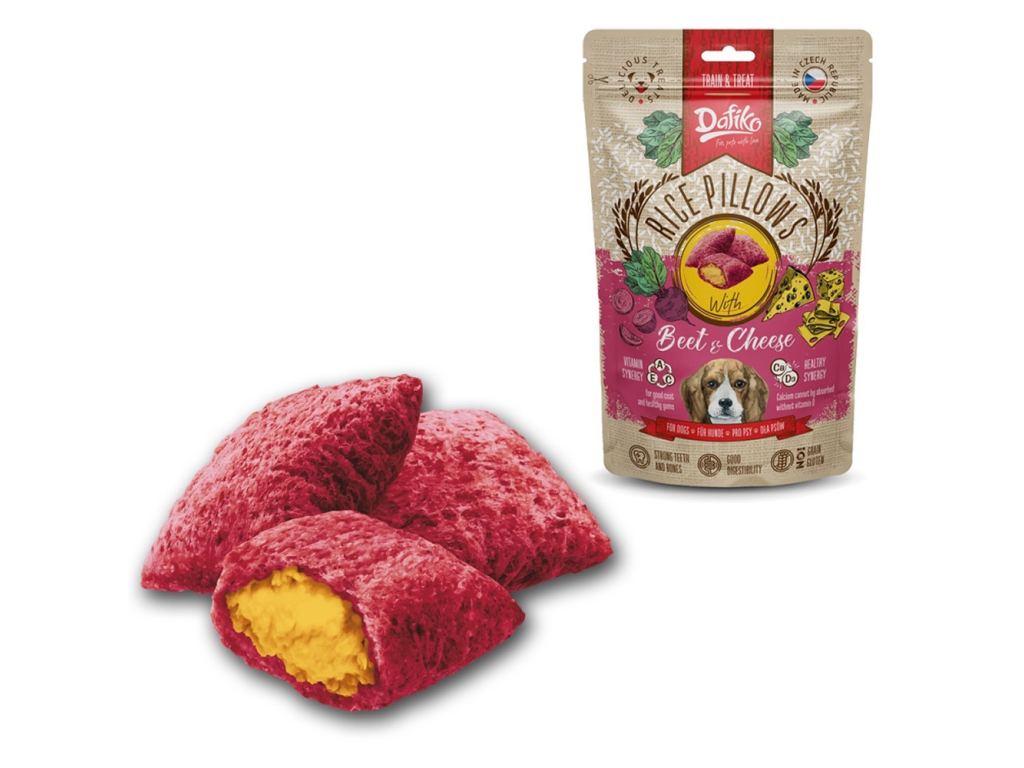 Polštářky obsahují kombinaci vybraných surovin, jako je červená řepa, sýr, karob, skořice, vápník a tuky živočišného původu. Tyto složky přispívají k dobré kondici trávicího traktu a celkové vitalitě psa. Přidané vitaminy podporují imunitní systém a správné fungování organismu. Pamlsek je určen výhradně jako doplněk ke kompletní krmné dávce.