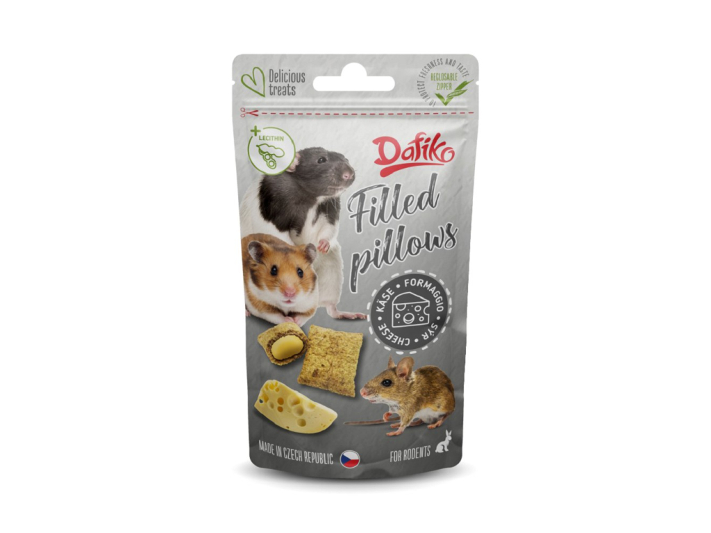 Lahodný pamlsek ve formě křupavých polštářků plněných sýrovou náplní, který je ideální jako odměna nebo zpestření každodenní stravy hlodavců. Díky praktické velikosti se snadno dávkuje a je vhodný pro pravidelné, ale střídmé podávání.