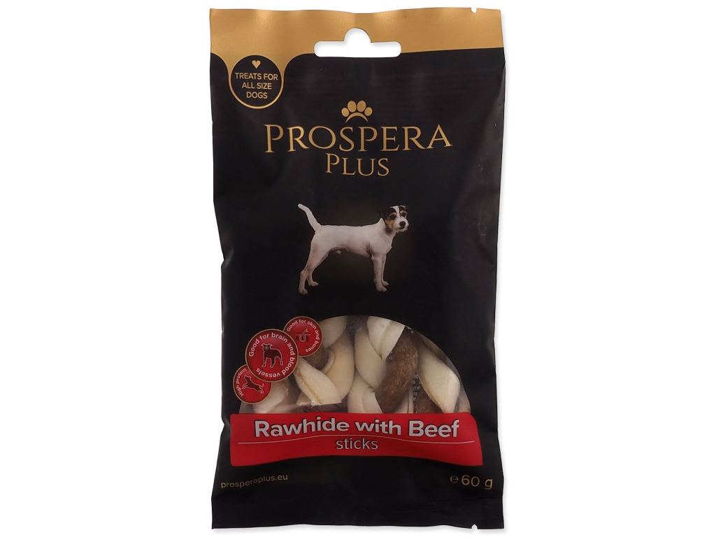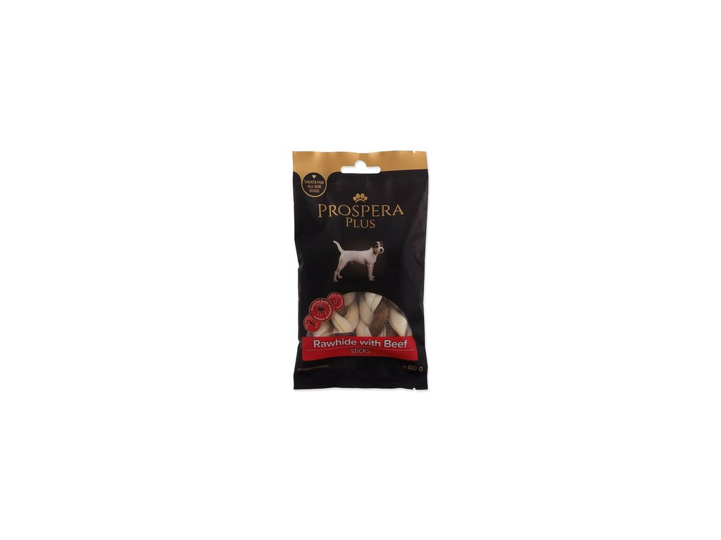 Pochoutka Prospera Plus Surová kůže s hovězím pletená tyčinka 4ks 7,5cm