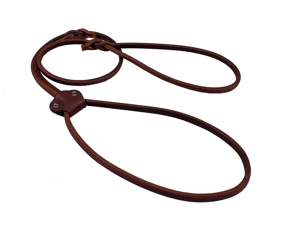 Předváděcí vodítka jsou vyrobena z pevné kulaté kůže a představují elegantní řešení pro výstavní účely a předvádění psů středních a velkých plemen. U vodítek o průměru 4 mm jsou spoje v uchu i smyčce pevně zajištěny kovovým plíškem. U silnějších variant 6 mm a 8 mm jsou spoje napevno propleteny, což zajišťuje vysokou pevnost a odolnost. Smyčka je vybavena koženou posuvnou částí, kterou lze snadno posouvat nahoru i dolů a tím upravovat velikost smyčky podle obvodu krku psa. Vodítko je určeno výhradně pro výstavní použití, nikoli pro každodenní venčení. Pro zachování kvality kůže doporučujeme pravidelnou údržbu vhodnými přípravky na kůži.
