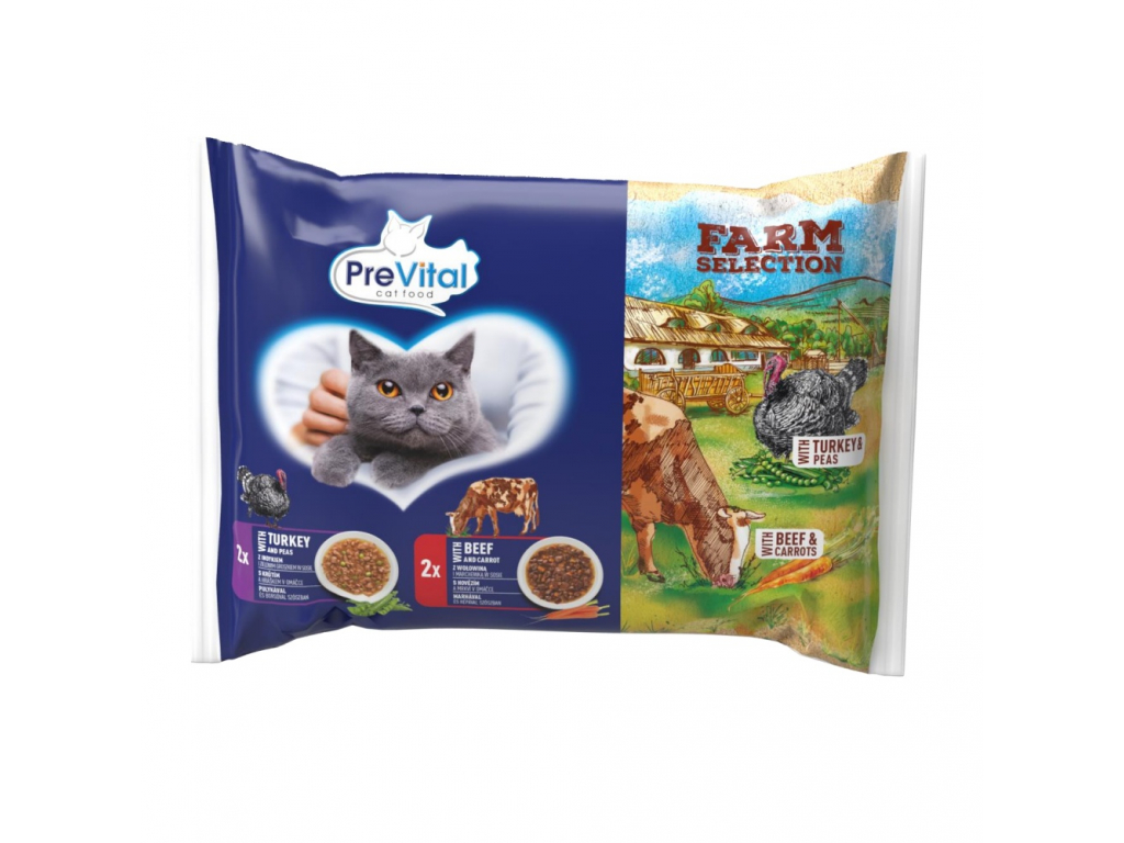 PreVital Cat Farm Selection hovězí a krůtí v omáčce se zeleninou 4x85g