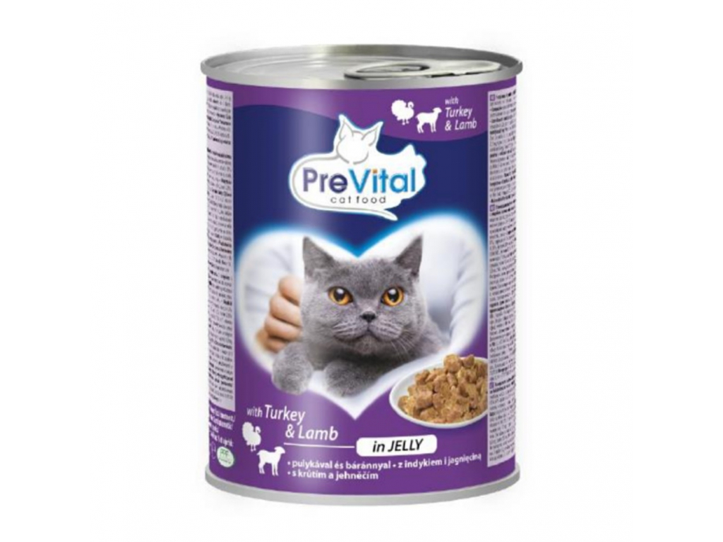 PreVital Cat konzerva krůtí a jehněčí v želé 415g