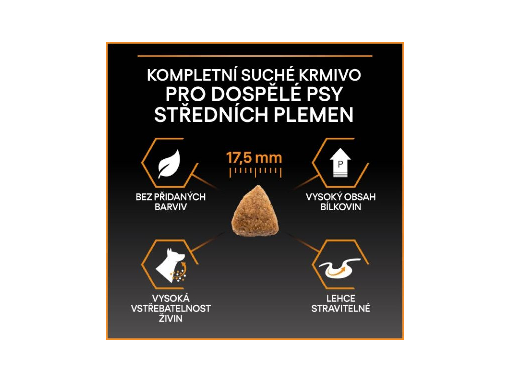 Výhodné balení s 2,5 kg navíc. Granulované krmivo s vysokým podílem kuřete pro dospělé psy středních plemen.Více informací